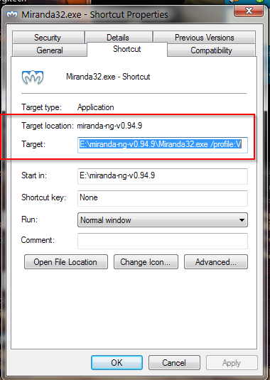 Хочу чтобы через ярлык маранда запускалась с нужным профилем. Как?